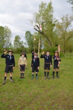 Al nostro risveglio, tutto era sceso e il Signore ci ha concesso una giornata fantastica, un quadrato generale con le guide (eravamo tantissimi, più di trecento !!) dove abbiamo potuto sentire anche i loro urli e la loro preghiera e mostrare loro i nostri saluti e la nostra preghiera. L’alza bandiera è filato tranquillo e poi, tornati nei sottocampi, è partita la sfida vera e propria: giochi a tema di sottocampo, travestimenti da cavalieri di San Giorgio, sfide tecniche, sportive e giochi tra squadriglie hanno fatto volare la giornata.